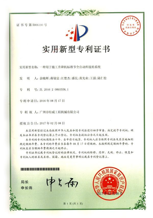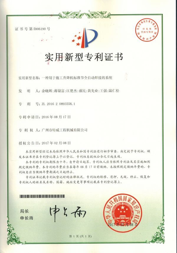 廣州市特威工程機械有限公司地處廣州市白云區(qū)神山鎮(zhèn),廣清高速神山出口附近,是一家施工升降機的專業(yè)生產(chǎn)廠家。公司成立于2011年,占地100000多平方米,注冊資金1060萬元,現(xiàn)有員工300余人其中工程技術(shù)人員33人,高級技術(shù)人員52人。